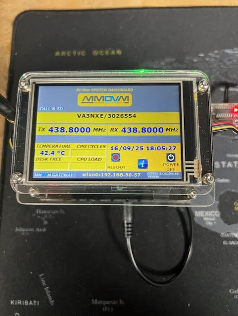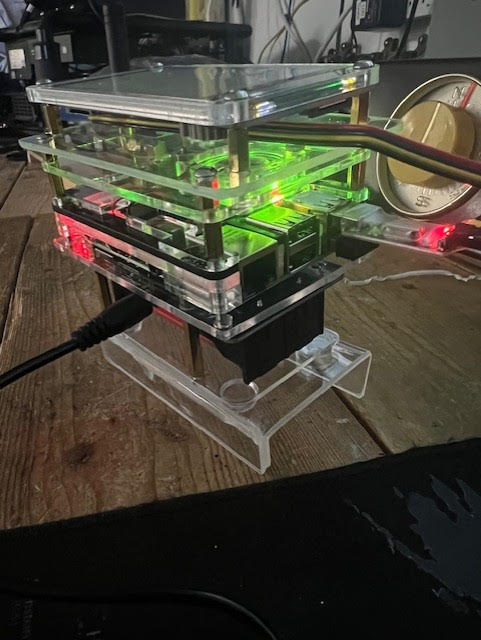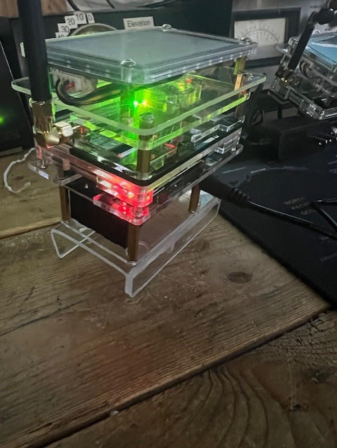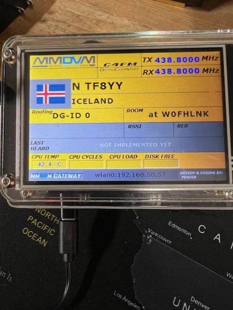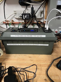 Dwight VA3NXE, put together this desktop hotspot which works the same as the mobile hotspot below. He put a larger 5 inch display on it instead of the typical 3.5 inch display. However the reason for the better power supply was mostly because the wall adapter was not strong enough for the larger display. Some of the characters on the screen were scrambled and it was very unstable. With the extra amperage the problem was solved. Voltage remained the same.